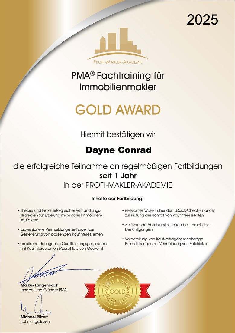 Gold Award - für 12 Monate Fachtraining für Immobilienmakler